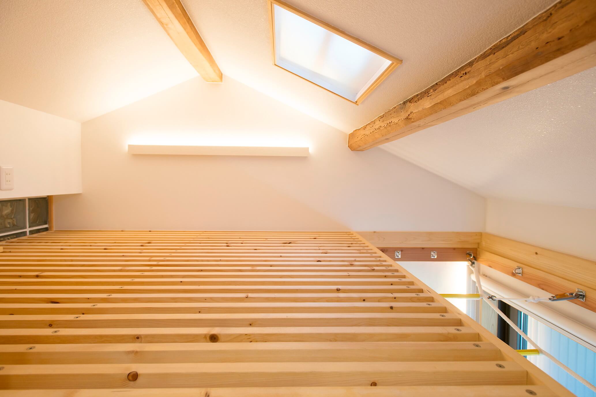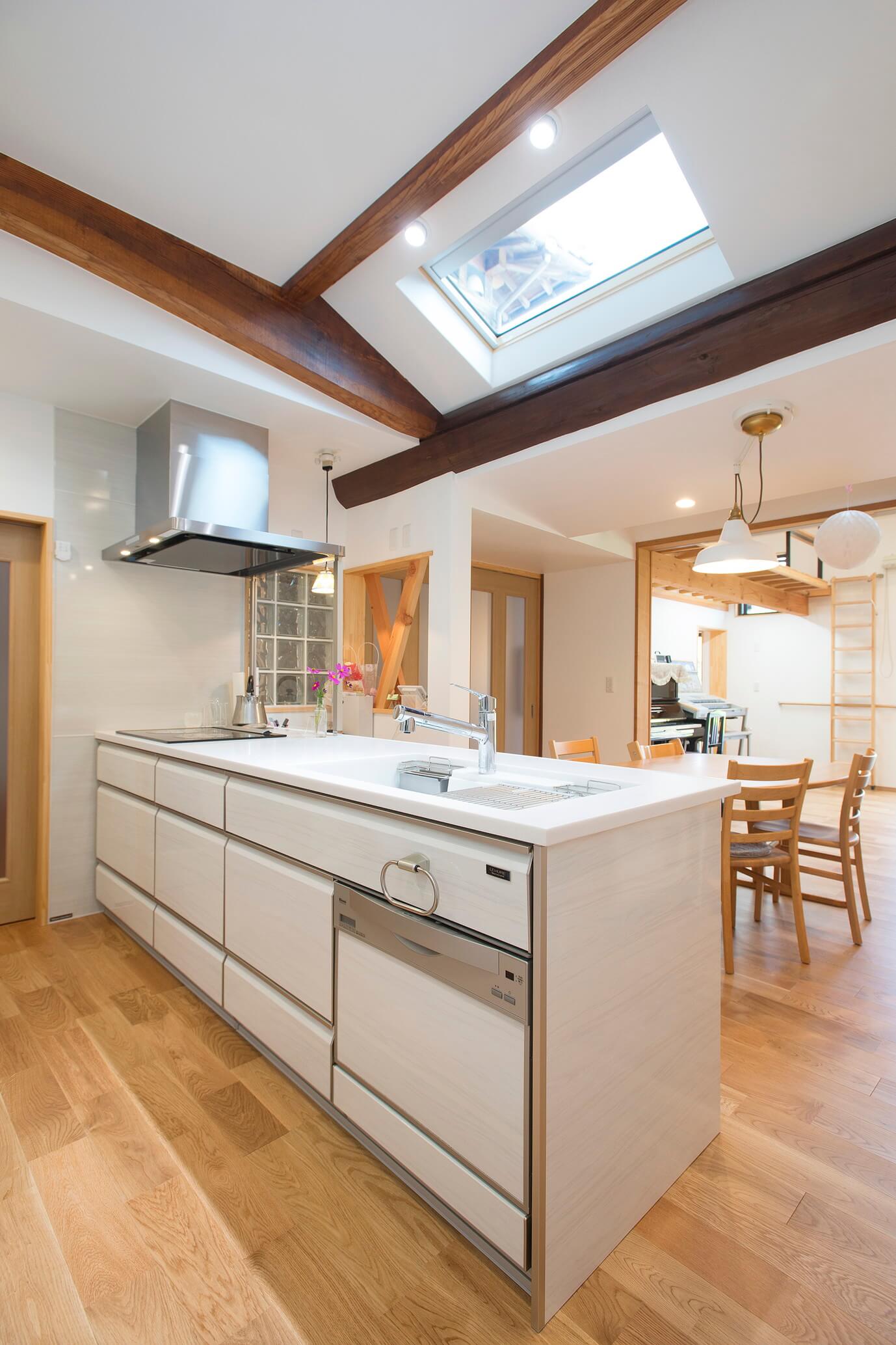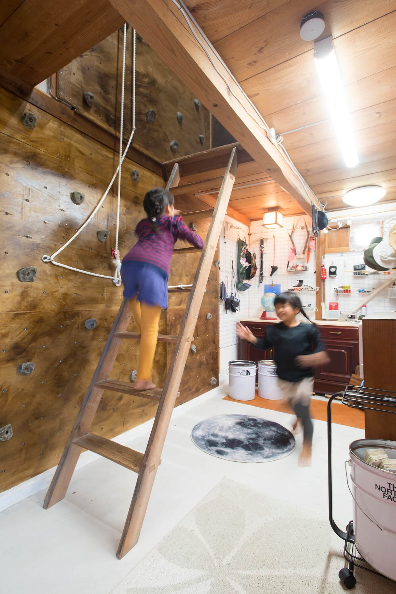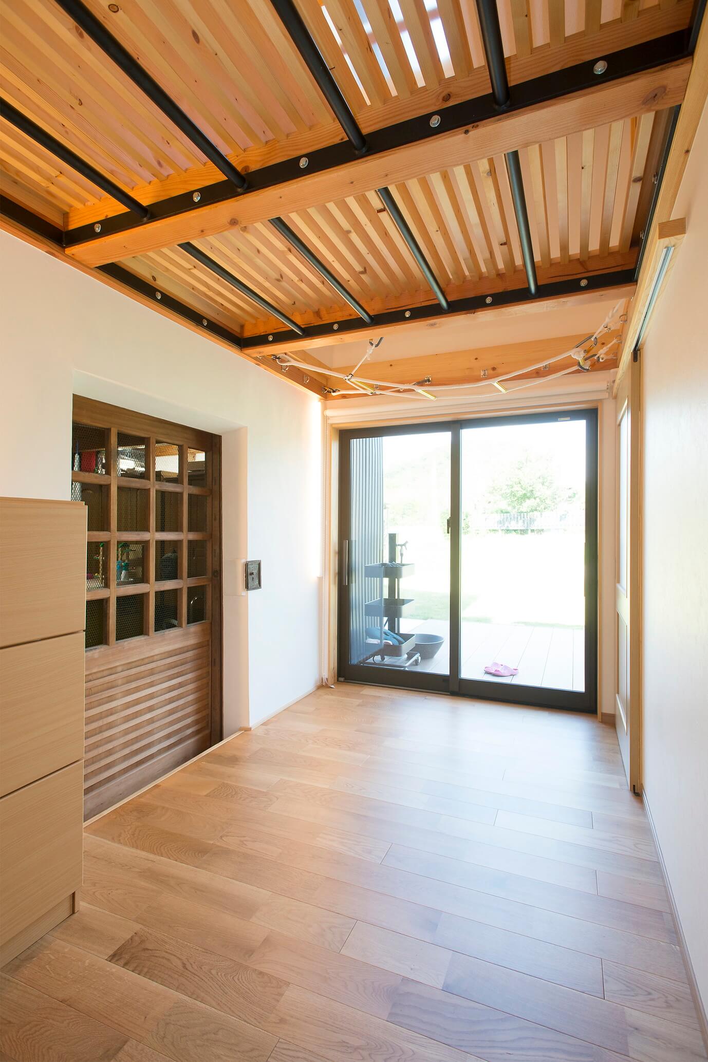リビングと蔵の間にあった物置スペースは窓がなく、息苦しさを感じるものでした。そこで採光と通風を確保し家事室として利用する計画としたうえで、ご主人の意向を取り入れた遊び心のある空間となりました。何より子供たちに大人気なんだそう。