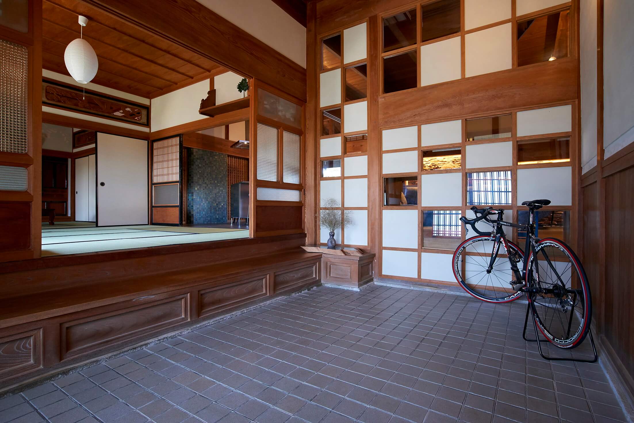 通り土間であった玄関を個性的な壁で間仕切り、デザイン性を重視しながらもプライバシーを確保しました。その他は基本的には手を加えず、当時の面影が残るようにしています。
